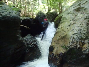 次々と出てくる滝をみんなで協力しながら越えて行きます。初めての方でも沢登りが楽しめます♪